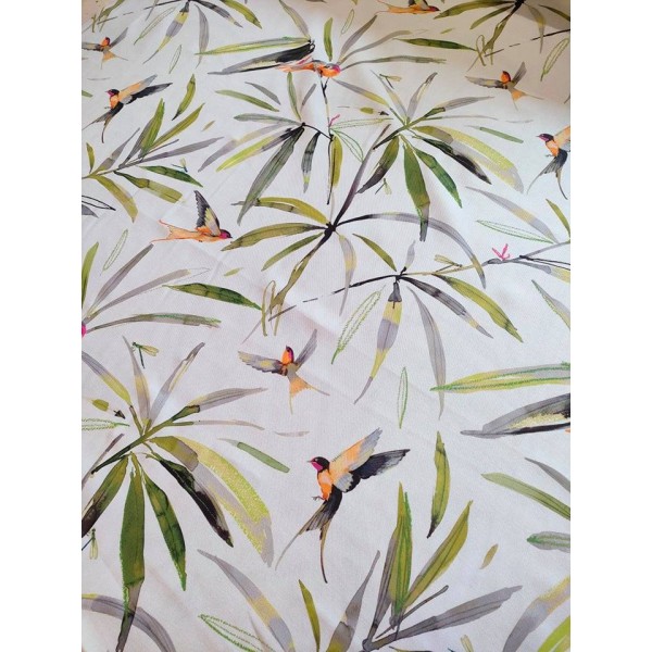 couleur : j fond blanc/écru - oiseaux verts