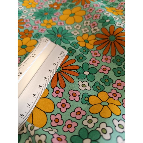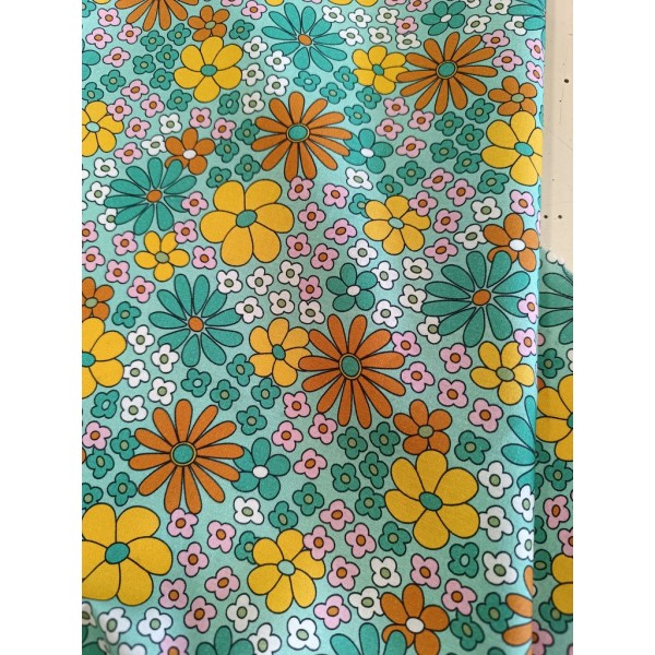 Tissu cretonne - Marguerites colorées - x10cm