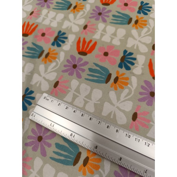 Tissu cretonne - Flowers power - x10cm