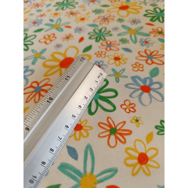 Tissu enduit fin - Marguerite - x10cm