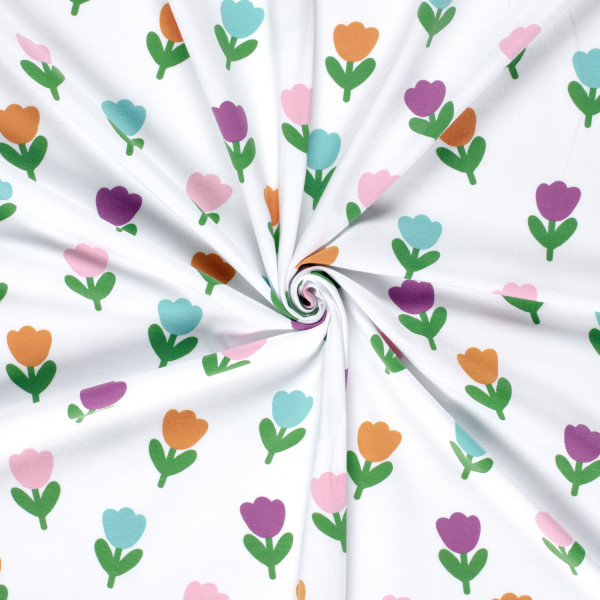 Tissu jersey 100% coton, idéal pour la réalisation de vêtements et accessoires pour petits et grands.