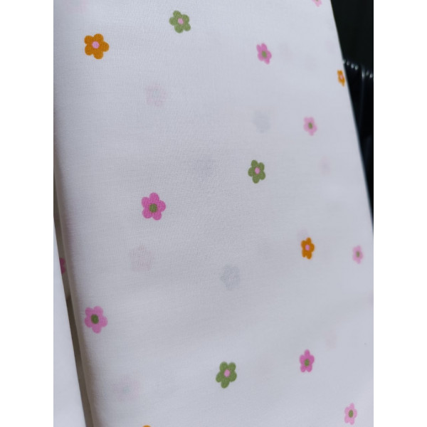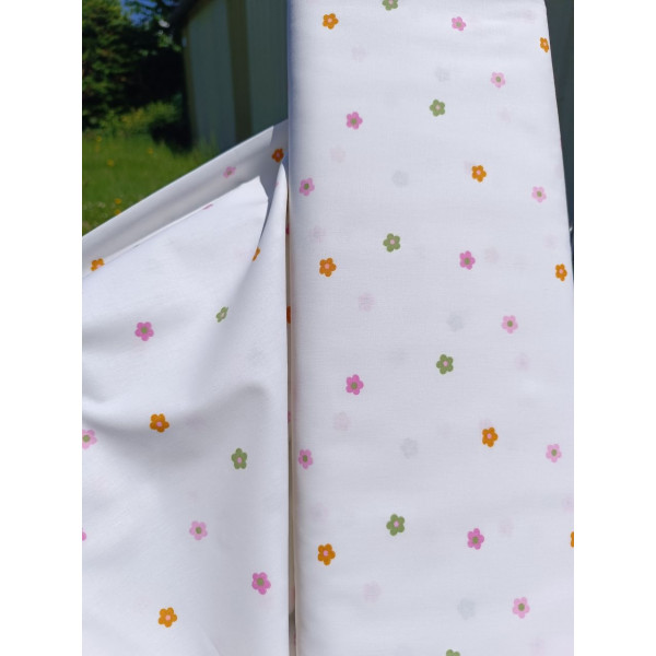 Tissu popeline - Petites marguerites - x10cm